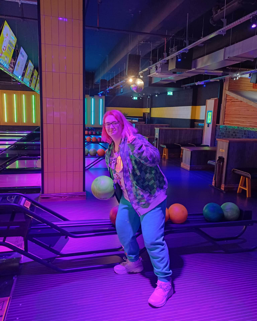 We played 2 games of bowling which was so much fun! It was buy 2 games, get the second one half off which was so cool so we of course did 2. I spent some of my birthday money as well and had pizza slice for dinner.